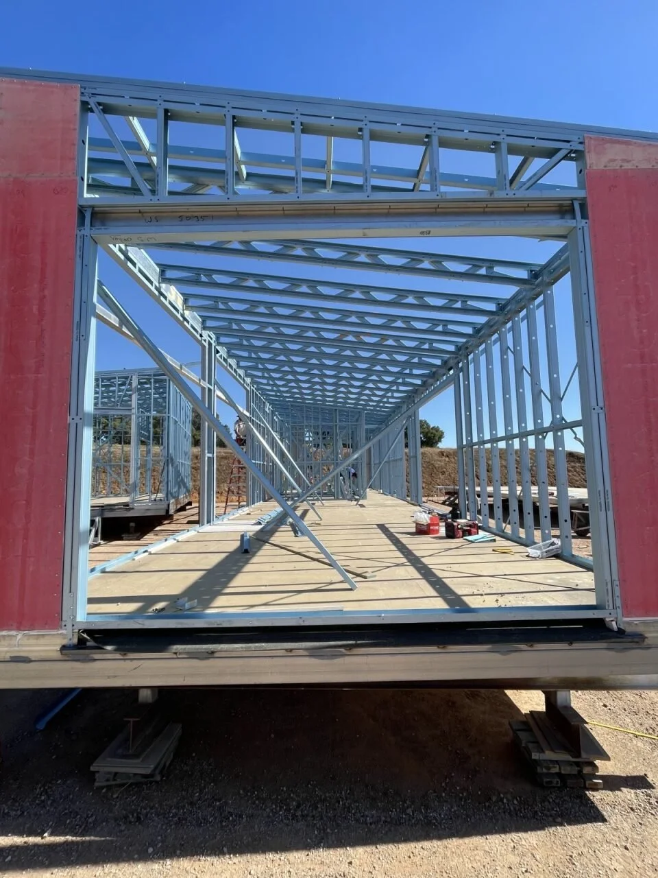 Our buildings begin with a fabricated steel structure. We then flesh that out with blue steel internal framing. This gives the building structural integrity and durability.